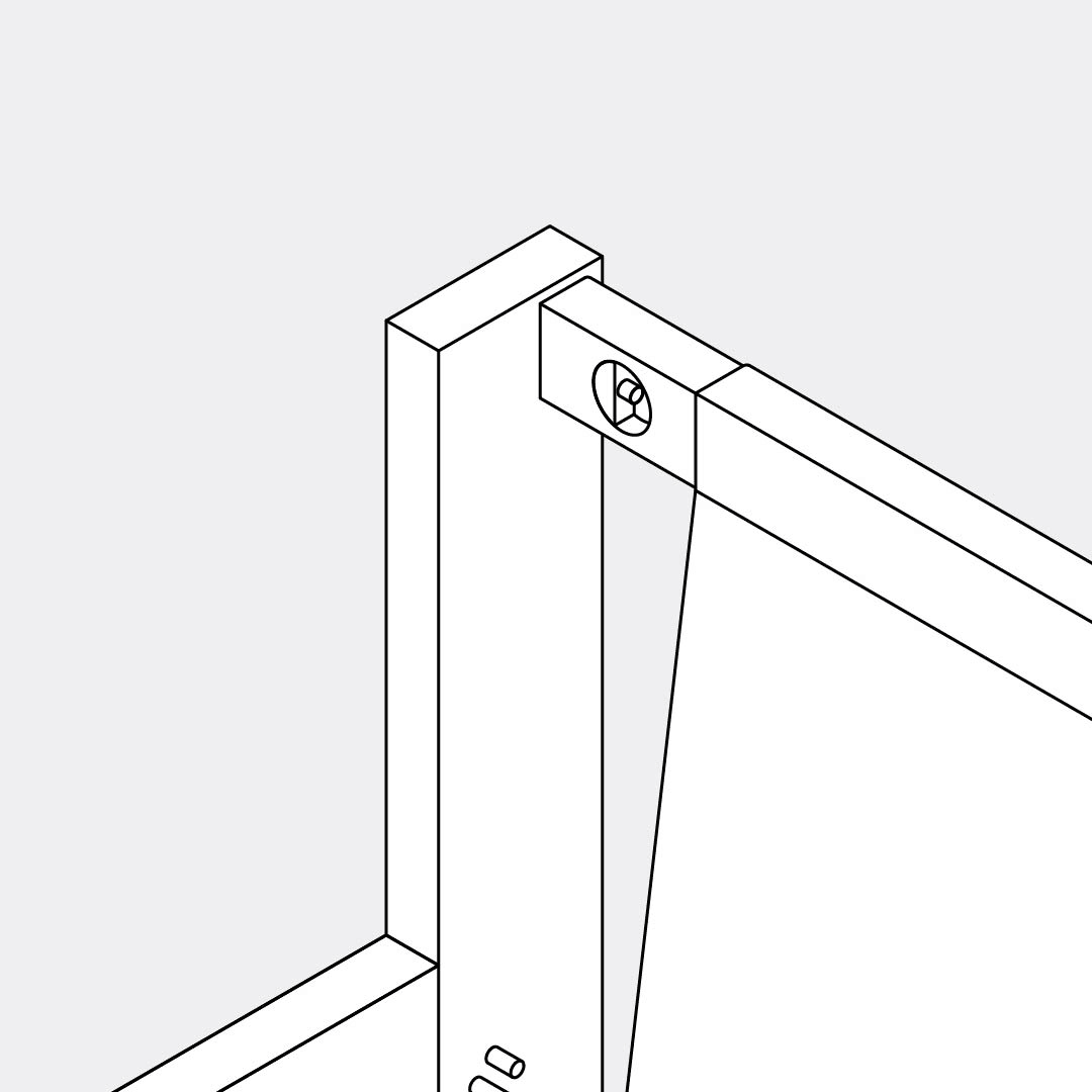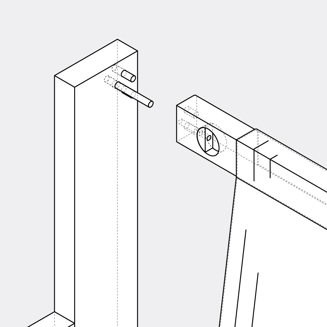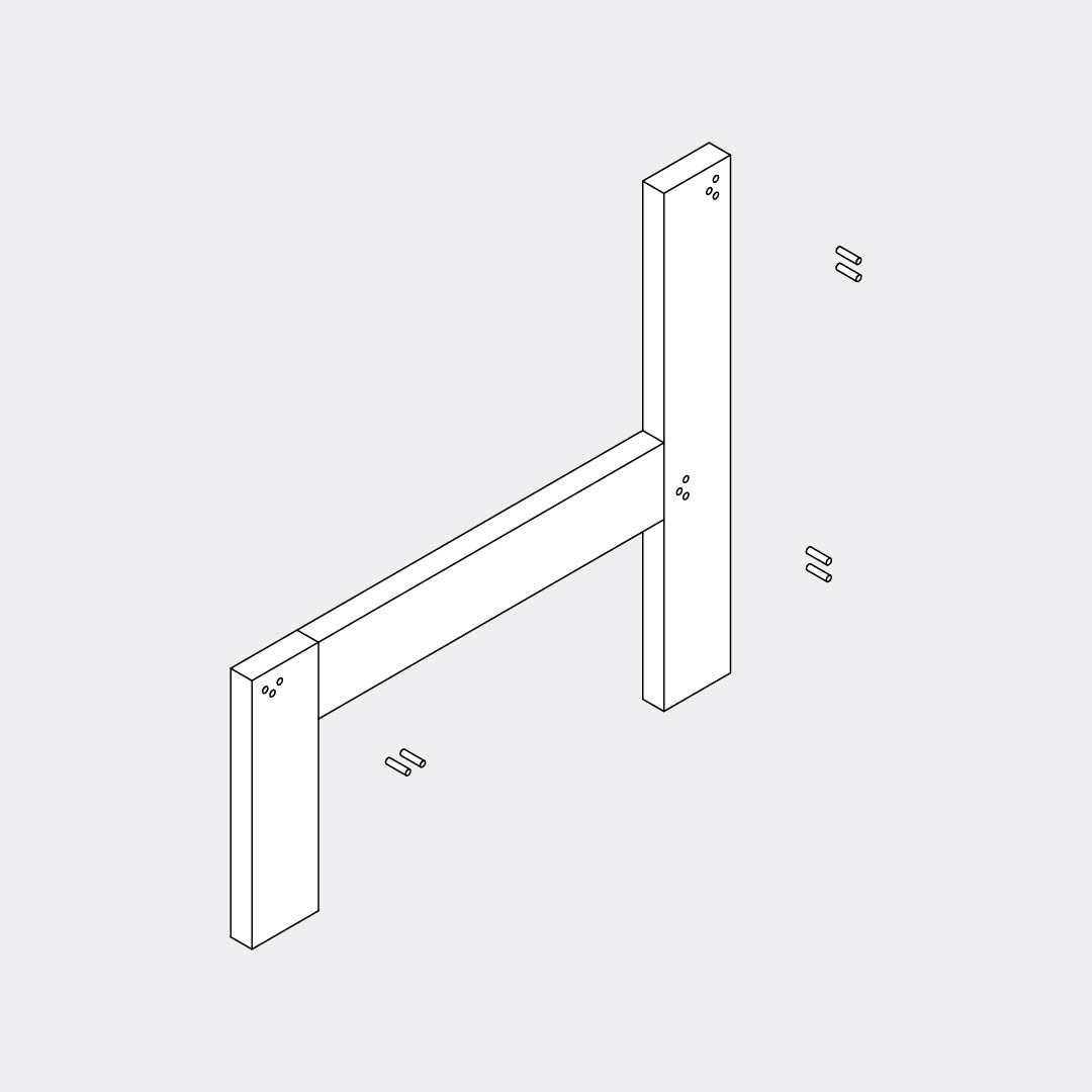 Insert 6 dowels into the holes in the left leg, as shown in the animation.