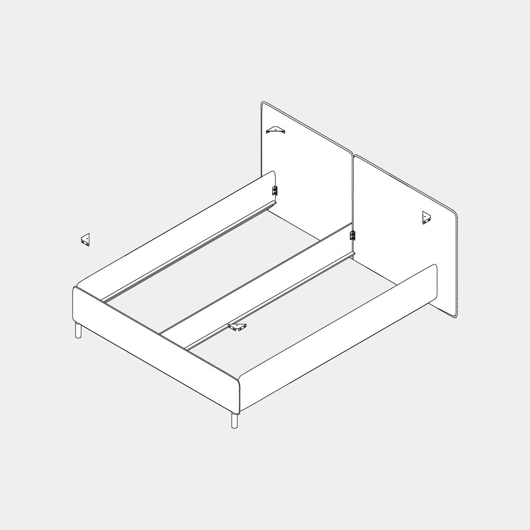 Attach the side panels to the headboard: slide the side panel fittings onto the bolts protruding from the headboard, then tighten with the Allen key.