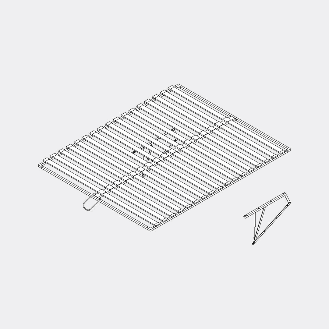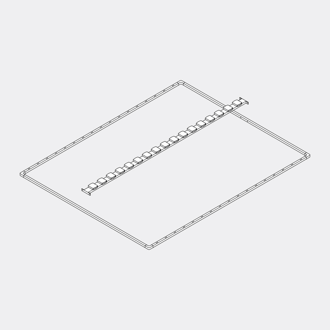 Fix the main support rail to the previously assembled frame on both sides. When inserting the rail, slide the Mattress Handle onto it, then tighten everything using M8x20 bolts and the Spanner.