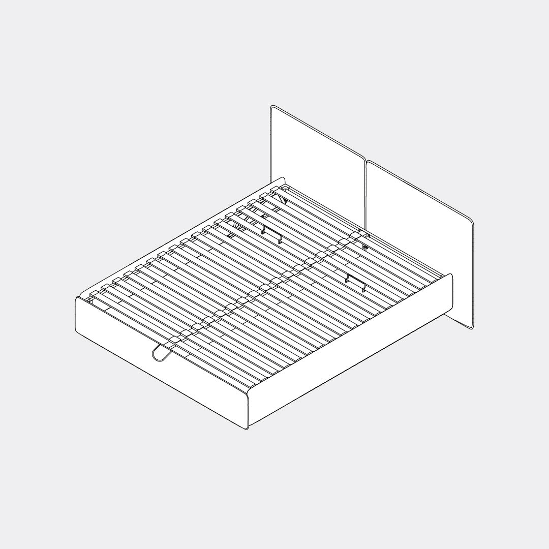 Place the 2 mattress stoppers on the back edge of the frame, as shown in the animation.