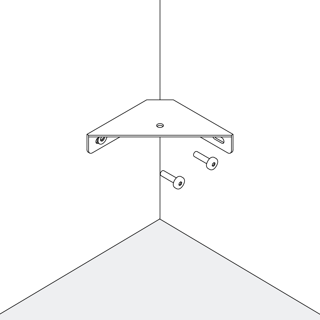 Attach the 4 angle brackets: fasten using M8x20 bolts with the Allen key.