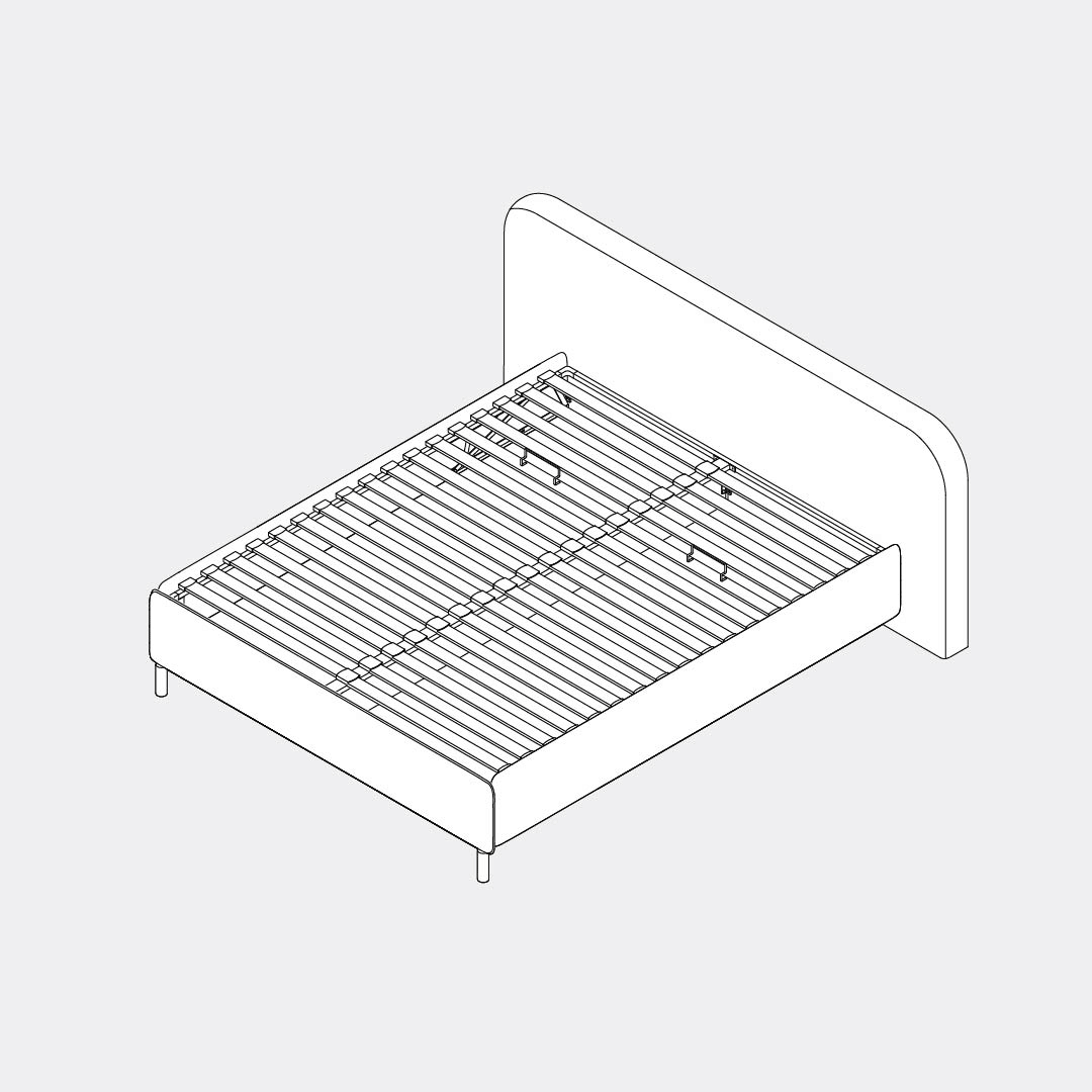 Place the 2 mattress stoppers on the back edge of the frame, as shown in the animation.