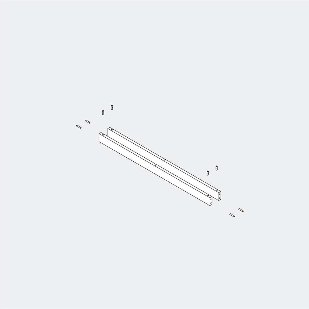 Insert the 30 mm barrel nuts and the 8 × 40 dowels into the corresponding holes in the support bars.