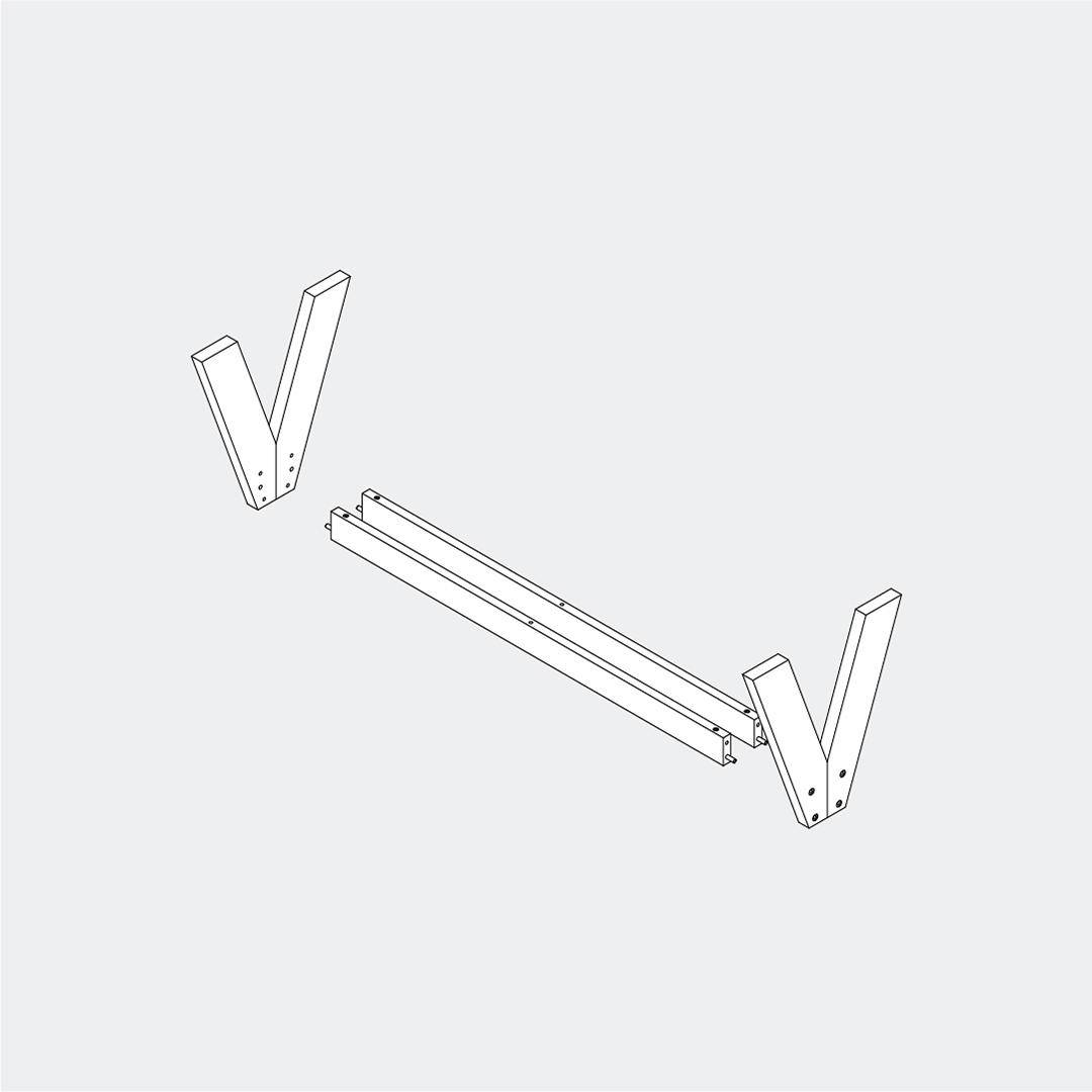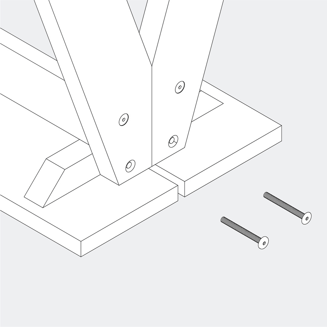 Fit the legs onto the dowels at the ends of the support bars, then secure them using the M6 × 60 screws and the Allen key.