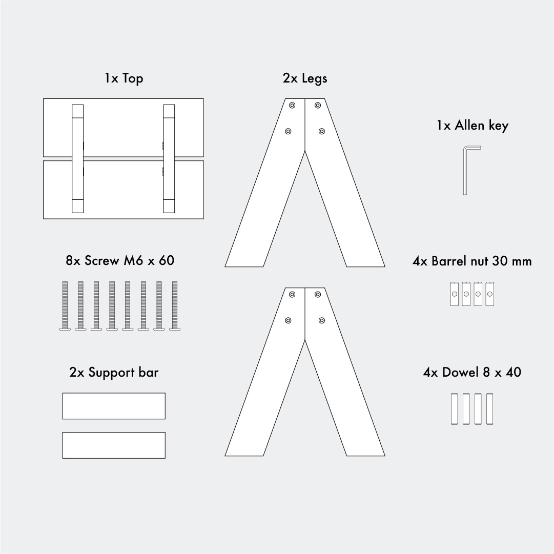 Check if you've received the box without any damages. If so, you’re good to go! Remember to always assemble furniture on a blanket, carpet or on the cardboard you got from us.