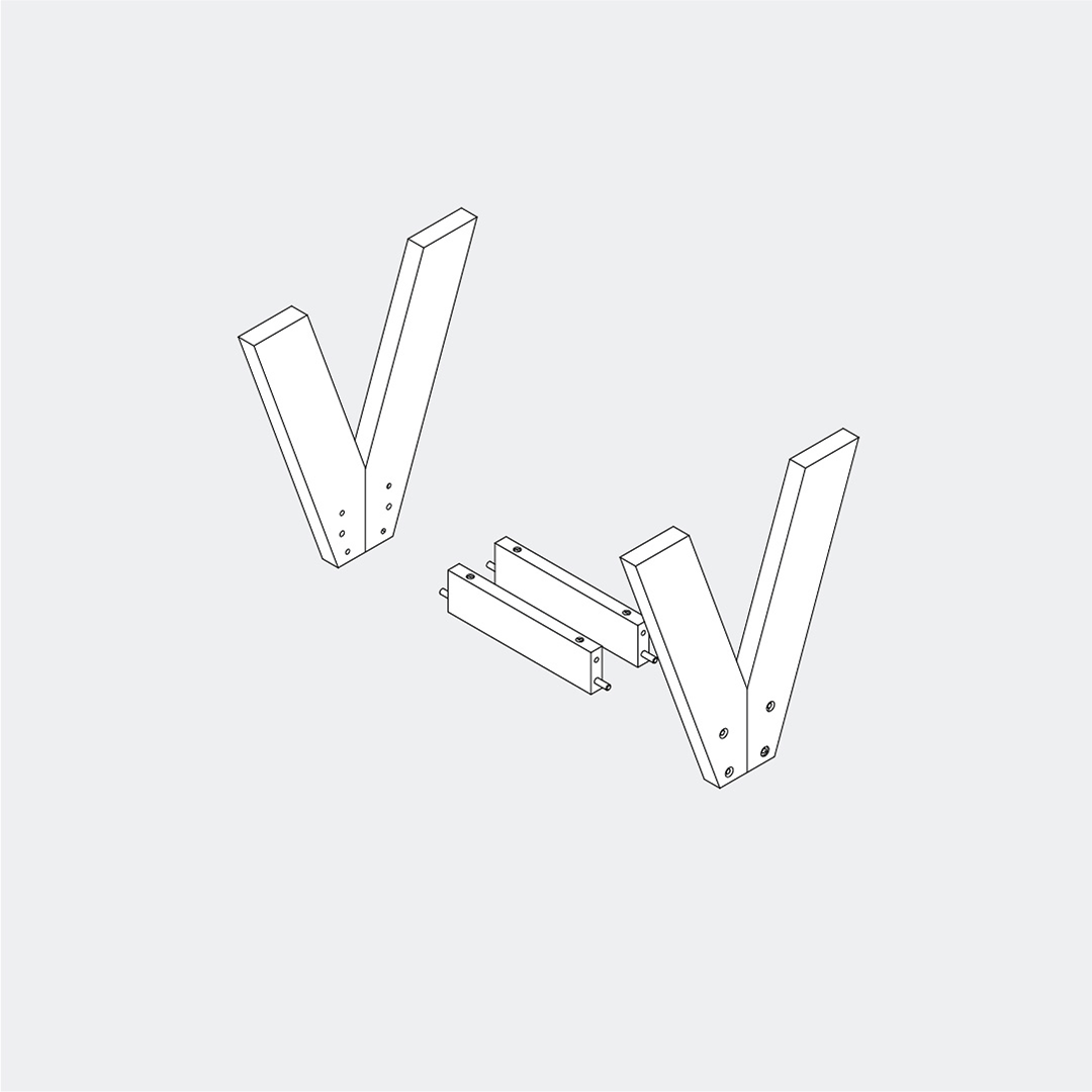 Fit the legs onto the dowels at the ends of the support bars, then secure them using the M6 × 60 screws and the Allen key.