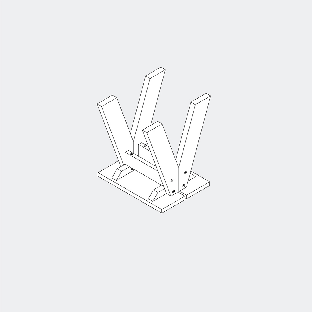 Place the stool top flat on the floor with the top surface facing down. Position the support bars with the attached legs onto the stool top, making sure the screw holes in both elements align. Fasten the legs to the top using the remaining M6 × 60 screws and the Allen key.