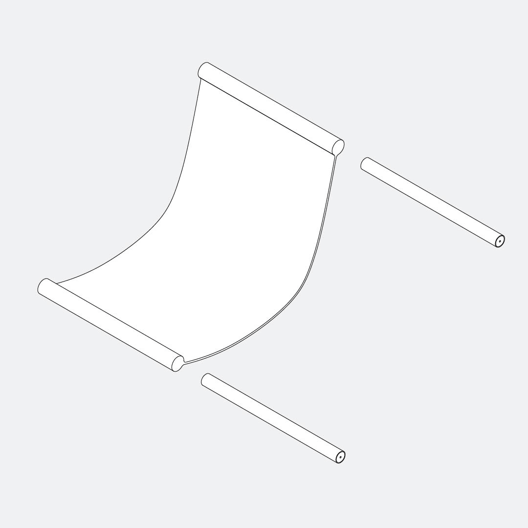 Insert two of the three tubes into the stitched sleeves at both ends of the seat fabric.