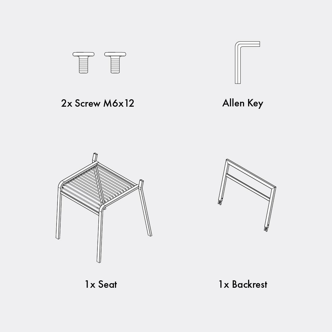 Fasten the backrest with 2 M6x12 screws using the Allen key.
